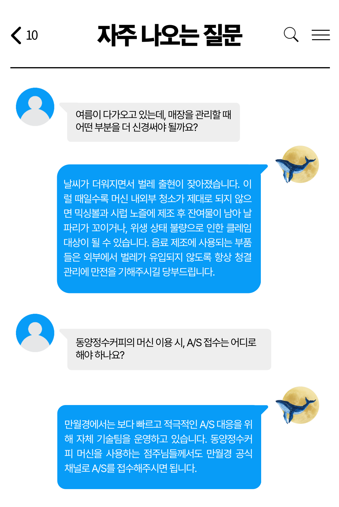 낮 기온이 30도를 육박하는 초여름 날씨가 이어지면서 어느새 여름이 껑충 다가왔음이 느껴지는데요. 만월경 상품개발팀에서는 여름을 시원하게 보낼 수 있는 신메뉴 준비에 한창이랍니다! 올여름엔 어떤 메뉴가 나올지 궁금해 할 여러분을 위해 작은 고래가 신메뉴에 대한 ‘이모티콘’ 힌트를 공개할게요!